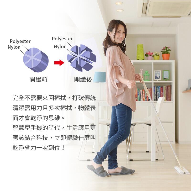 - 纤维直径只有发丝1/300,宛如数十亿支微米级拖把同时扫除,面对任何大小粉尘、顽强污渍或黏腻油垢等,轻松一次性彻底捕捉抹除.
