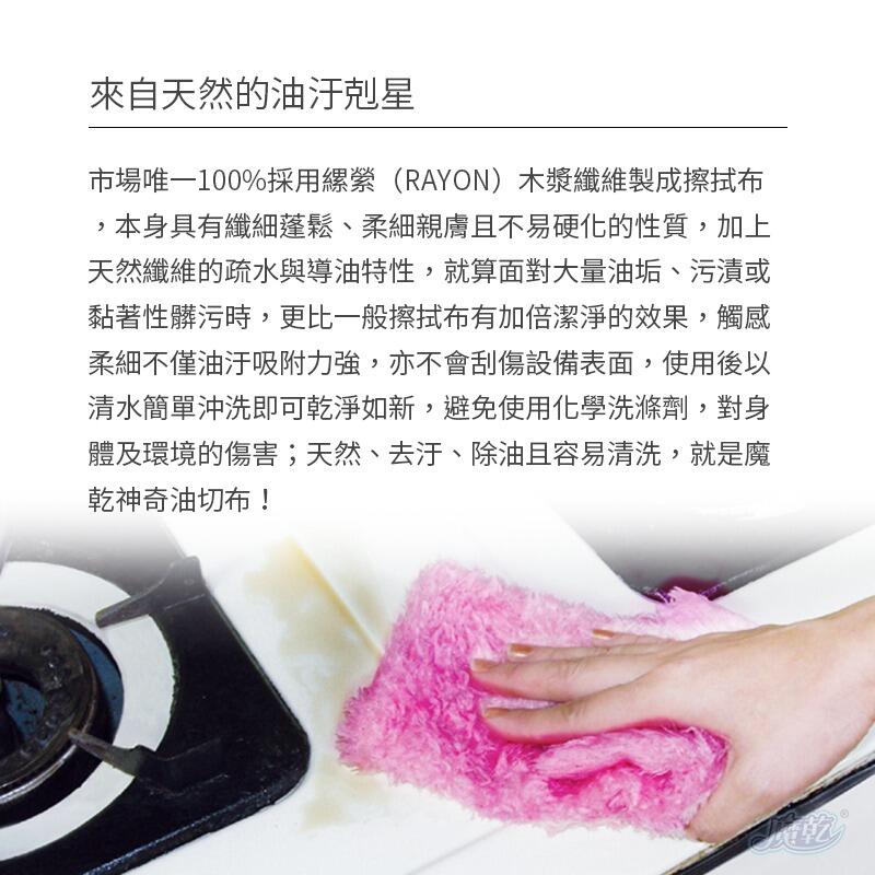 - 市场唯一采用100%缧萦(RAYON)木浆纤维制成擦拭布,利用天然纤维特有的疏水与导油性,针对大量油垢、污渍或黏着性脏污时,提供比一般擦拭布有加倍洁净的效果,同时可减少洗碗精用量,降低化学残留疑虑.